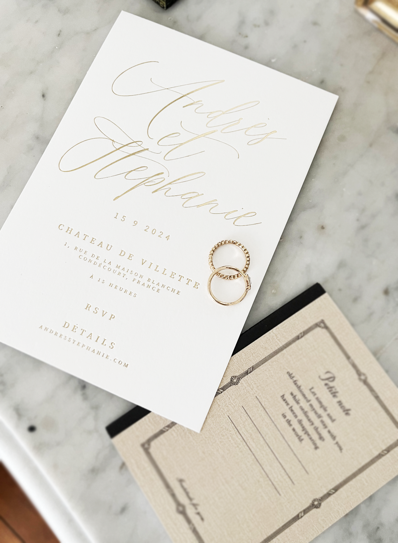 After a phase of research and inspiration, I begin to define the project: I create, sketch by hand, design layouts, and only then select the perfect paper for each element needed to complete the work.